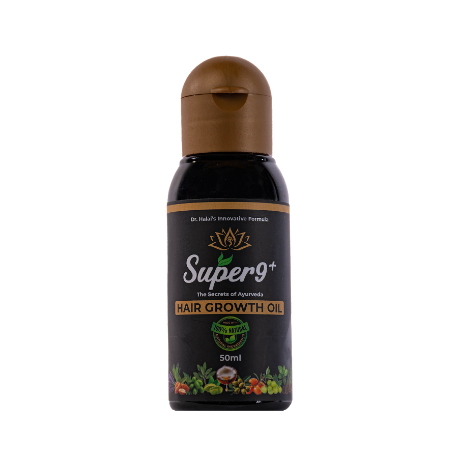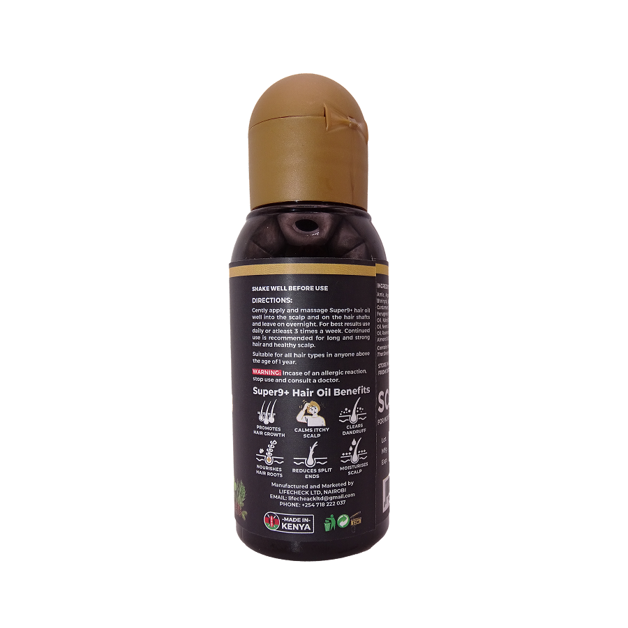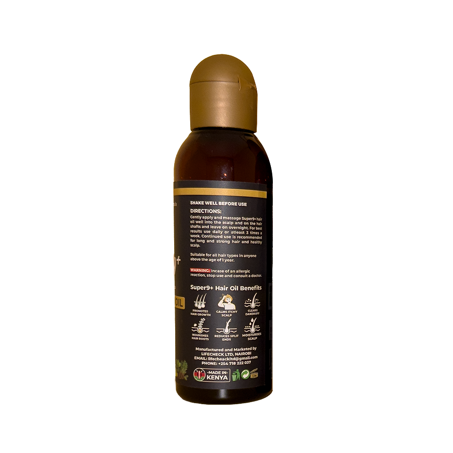 Take a small amount of Super9+ Hair Oil and apply it evenly to your scalp and along the length of your hair.
