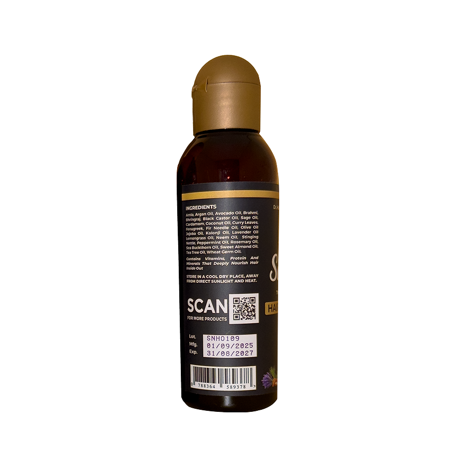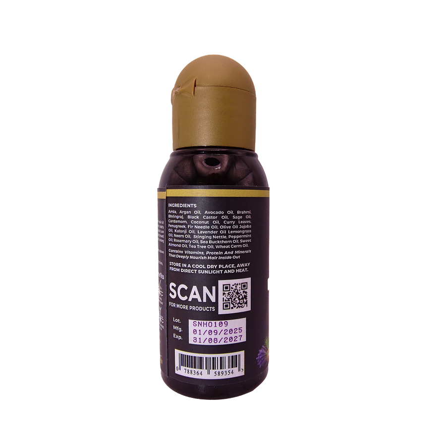 Amla, Argan Oil, Avocado Oil, Brahmi, Bhringraj, Black Caster Oil, Sage Oil, Cardamom, Coconut Oil, Curry Leaves, Fenugreek, Fir Needle Oil, Olive Oil, Jojoba Oil, Kalonji Oil, Lavender Oil, Lemongrass Oil, Neem Oil, Stinging Nettle, Peppermint Oil, Rosemary Oil, Sea Buckthorn Oil, Sweet Almond Oil, Tea Tree Oil, Wheat Germ Oil